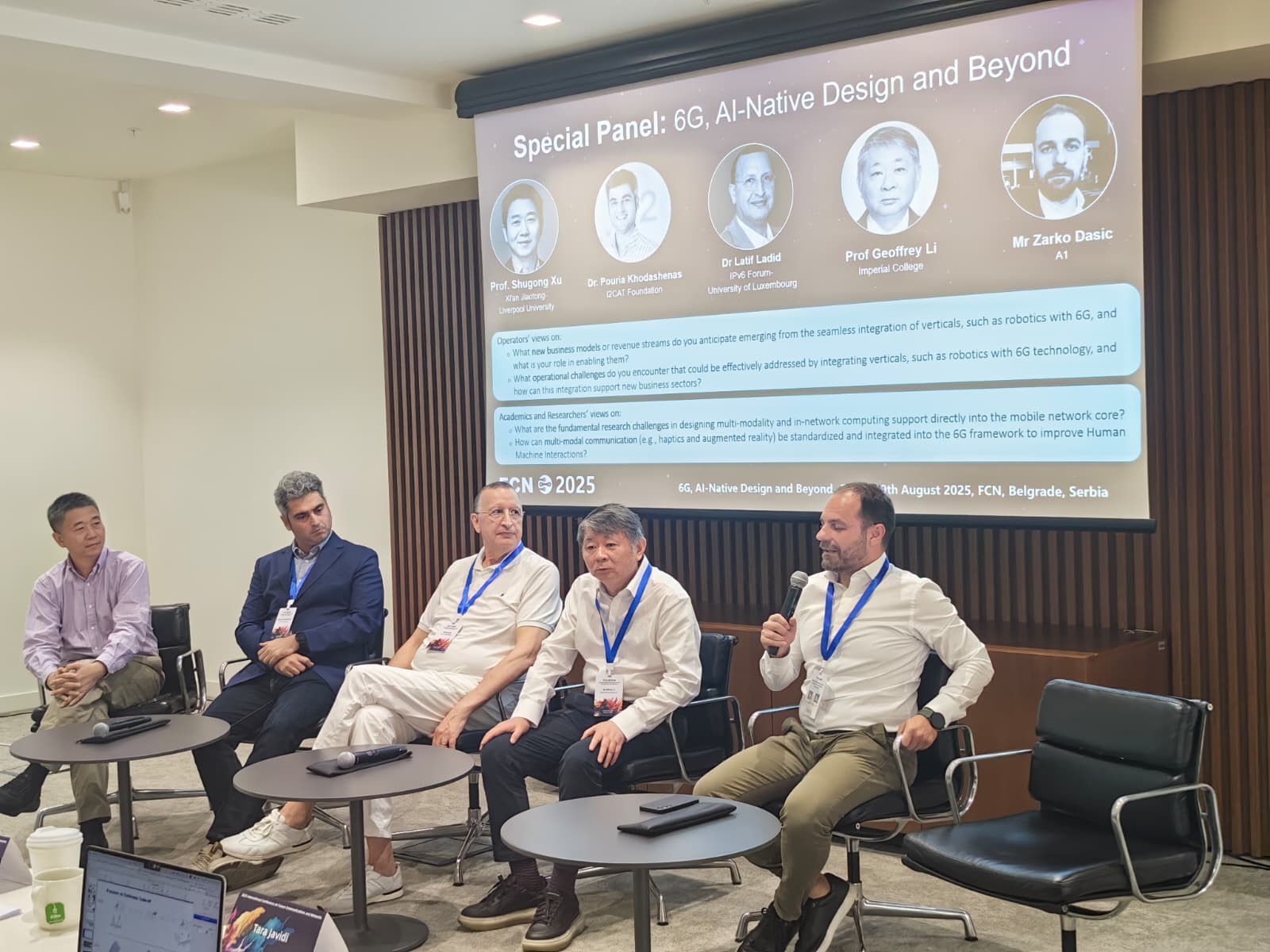 On August 19, 2025, one6G co-hosted a panel titled “6G, AI-native and Beyond” at the International Conference on Future Communications and Networks (FCN 2025) in Belgrade, Serbia. The panel was jointly organized by the one6G Work Item 216 “6G Empowering Robotics,” the NetworldEurope SME Working Group, and euRobotics.